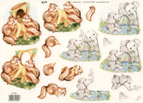 3D Bogen geprägt - TBZ 571169 - Elefanten + Eichhörnchen