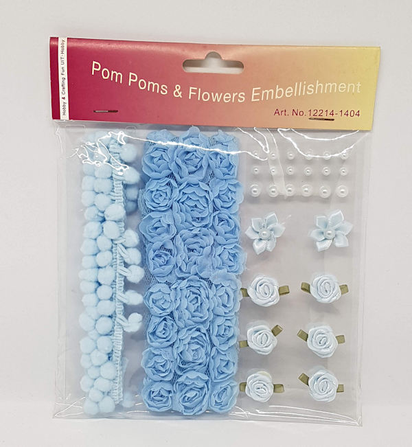Dekorationsset Pom Poms & Blumen hellblau - 30tlg.