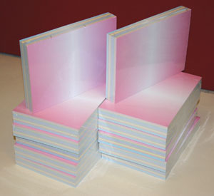 Packung mit 100 Blatt Kartenpapier in 10 verschiedenen Farben, mit einem Farbverlauf, der zur Mitte hin heller wird.