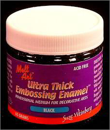 Das Ultra Thick Embossing Enamel ist ein Embossingpulver mit großen Partikeln, das mit der Hilfe eines Heißluftföhnes geschmolzen werden kann und so für veschiedenste Basteltechniken, überwiegend aber für die Stempeltechnik verwendet werden kann.