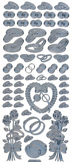 Sticker Ringe, Herz+Rosen - 0803 - silber   1 Bogen 10x23cm