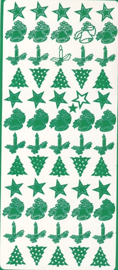 Sticker Stern, Glocke, Kerze, Weihnachtsbaum - grün   1 Bogen 23x10 cm