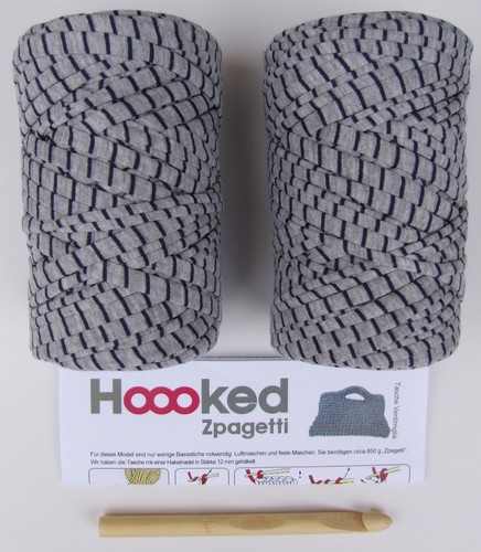 Hoooked Zpagetti - Starterkit grau-blau gestreift - 4tlg.