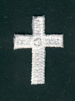 Aufbügelbare Stickerei Kreuz weiß. Größe je Motiv: ca. 2,5 x 2 cm