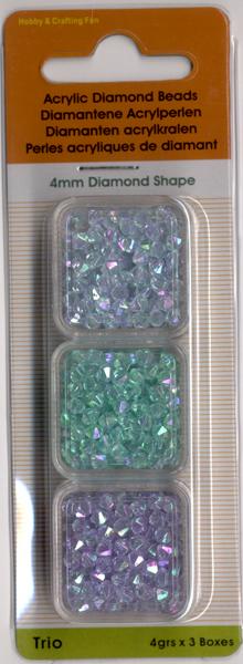 Alle drei Farben sind getrennt in kleine Döschen verpackt und jeder Acryldiamant ist mit einem Loch versehen.