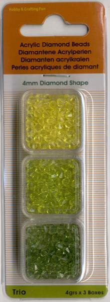 Alle drei Farben sind getrennt in kleine Döschen verpackt und jeder Acryldiamant ist mit einem Loch versehen.