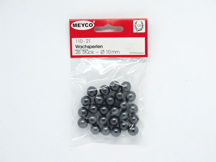 Wachsperlen Ø 10 mm, ca. 26 Stück - anthrazit