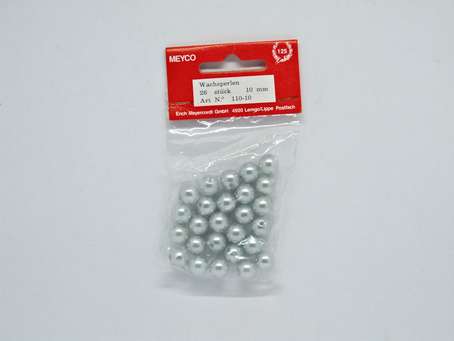 Wachsperlen Ø 10 mm, ca. 26 Stück - hellgrau