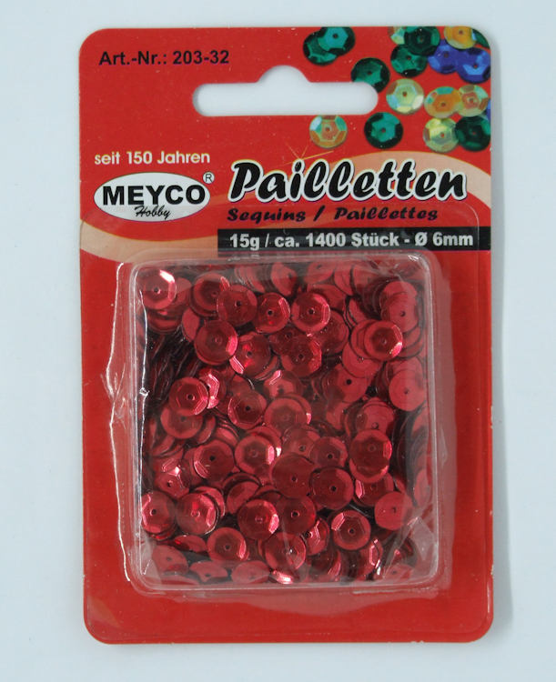 Pailletten gewölbt Ø 6mm - ca. 1.400 Stück - rot metallic